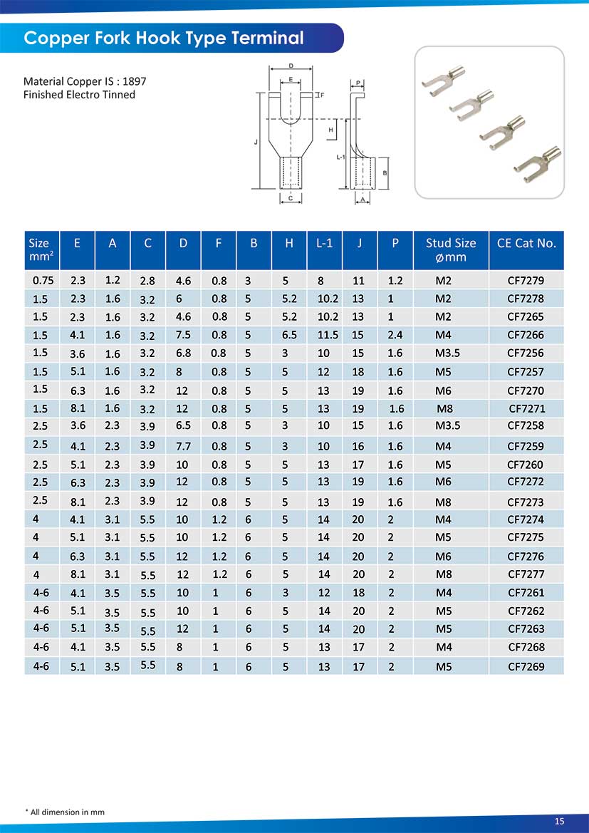 Copper fork Hook type terminal